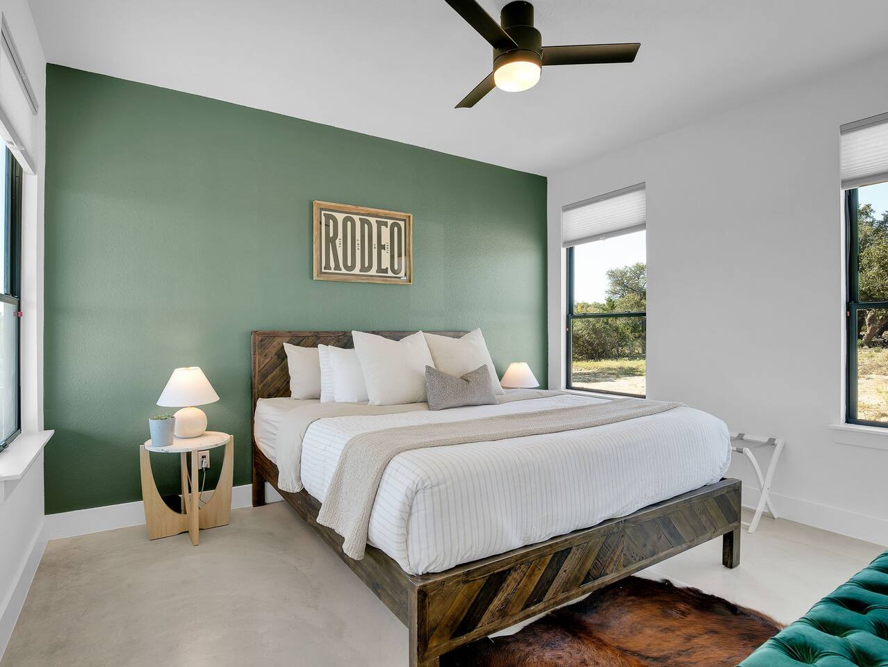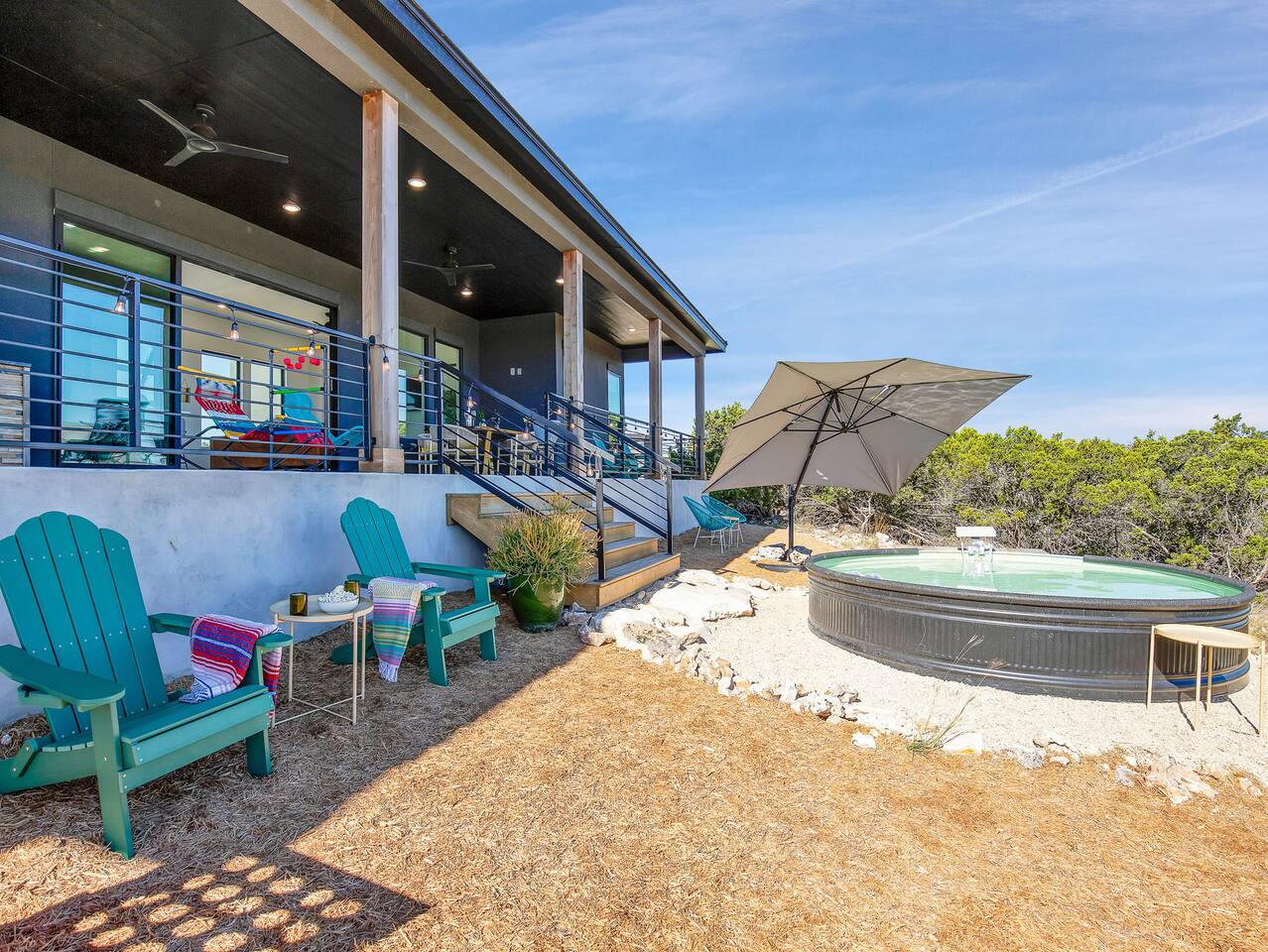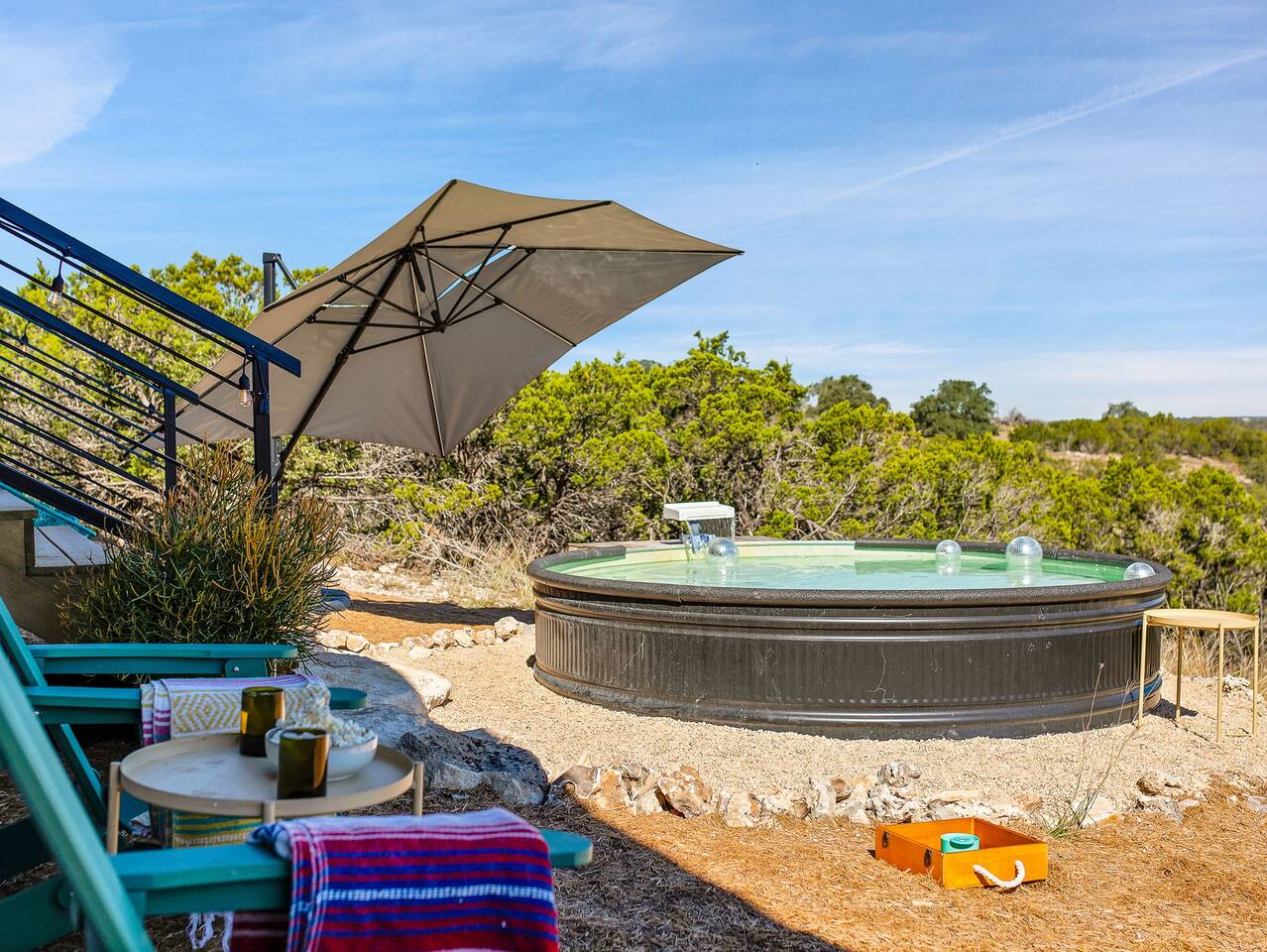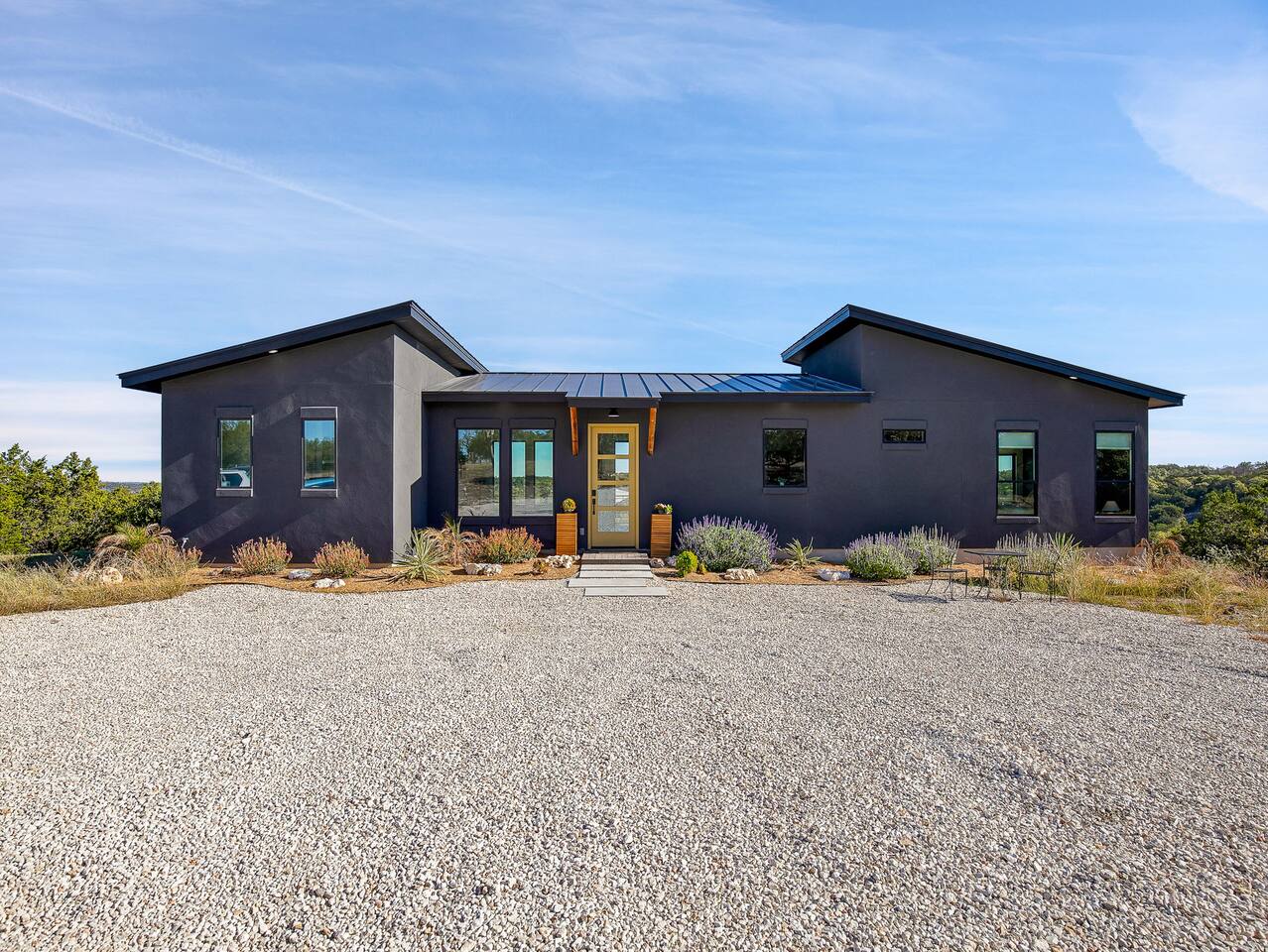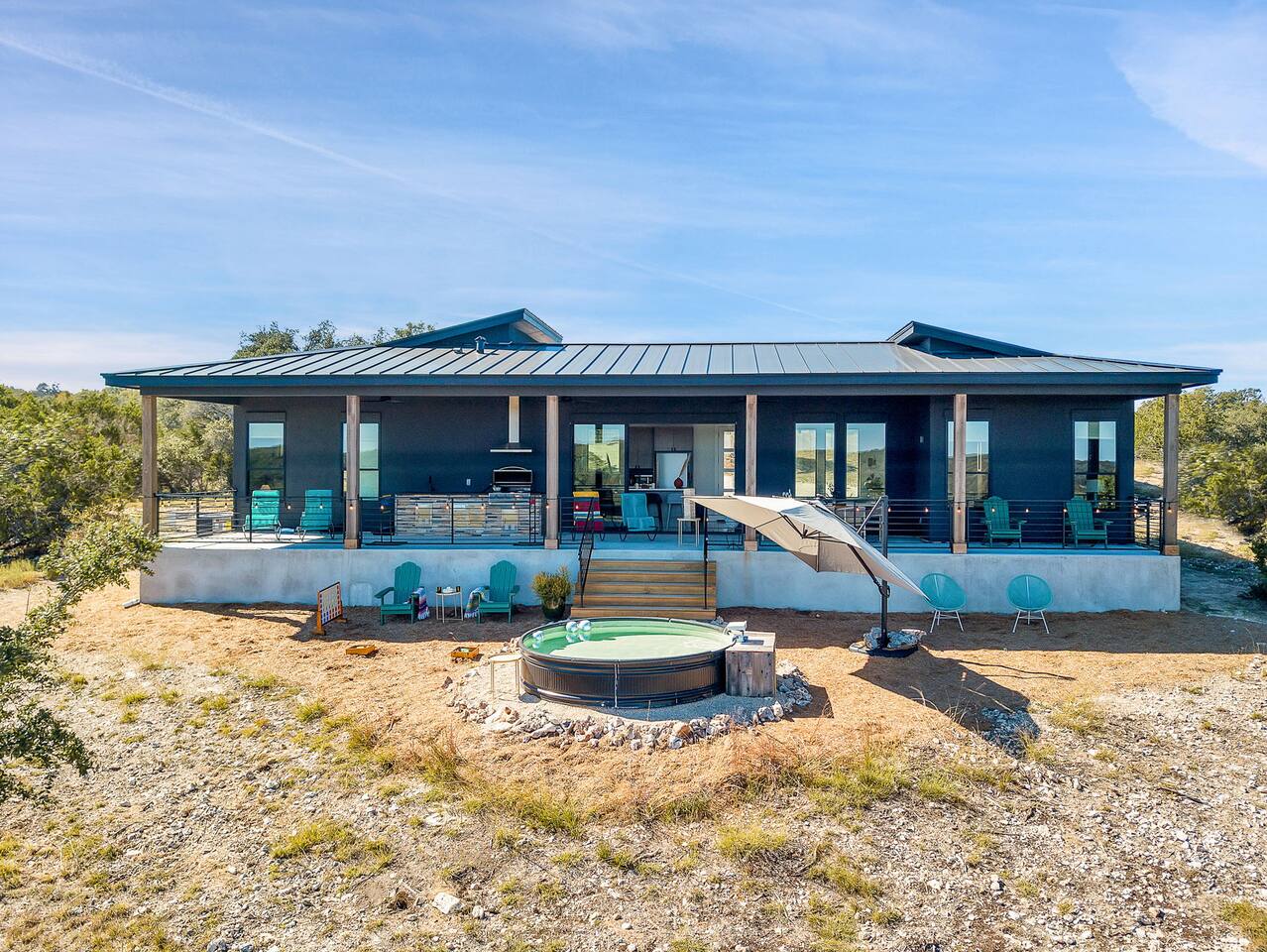 Welcome to your modern Ranchette nestled on 29 acres of scenic hill country beauty! 1.5 from Austin, TX! With 2 bedrooms and 2 baths, this retreat offers a perfect balance of rustic luxurious charm and comfort for your getaway. Looking to add a little indulgence? Our charcuterie packages can be pre-purchased and will greet you when you arrive! Message me after you book to make arrangements. (3 day notice required for charcuterie packages. Additional fees apply) Indulge in relaxation in your master suite, where you'll find an ensuite bathroom boasting a standing shower and a rejuvenating soaking tub. Make yourself comfortable in the luxurious 100% performance cotton linens, linen blend throws and well appointed designer furnishings. The living room is roomy and cozy, extending a welcoming space to unwind and enjoy quality time with loved ones. Sink into the leather couch, catch up on your favorite shows, or simply stargaze after the sunsets on a clear night! Panoramic tri-fold sliding doors allow you to indulge in the perfect setting for al fresco dining with outdoor seating. Ground yourself in the beauty of nature, or simply take a moment to savor your morning coffee while soaking in the tranquil atmosphere. Your rocking lounge chairs provide a serene spot to unwind and soak up the stunning hill country views. And when the Texas summer sun beckons, our cowboy pool awaits, offering a refreshing respite from the heat while you revel in the breathtaking surroundings. Sit by the fire pit and enjoy the view in the winter months (Oct- Feb). Bring your binoculars or telescope for the ultimate stargazing experience! Experience the perfect blend of modern comfort and breathtaking views at your tranquil ranchette. Book your stay now to experience the Texas hill country and create cherished memories in this idyllic hill country retreat! 20 min to Blanco, TX 22 min to Albert, TX 30 min to Luckenbach, TX 30 min to Boerne, TX 45 min to Fredericksburg, TX 50 min to Dripping Springs, TX 1 hr to San Antonio, TX 1.5 hrs to Austin, TX Cell service may be limited. Unplug from modern technology while relaxing and resetting at your hill country home. We provide T-Mobile Wifi which allows for limited streaming and wifi calls.