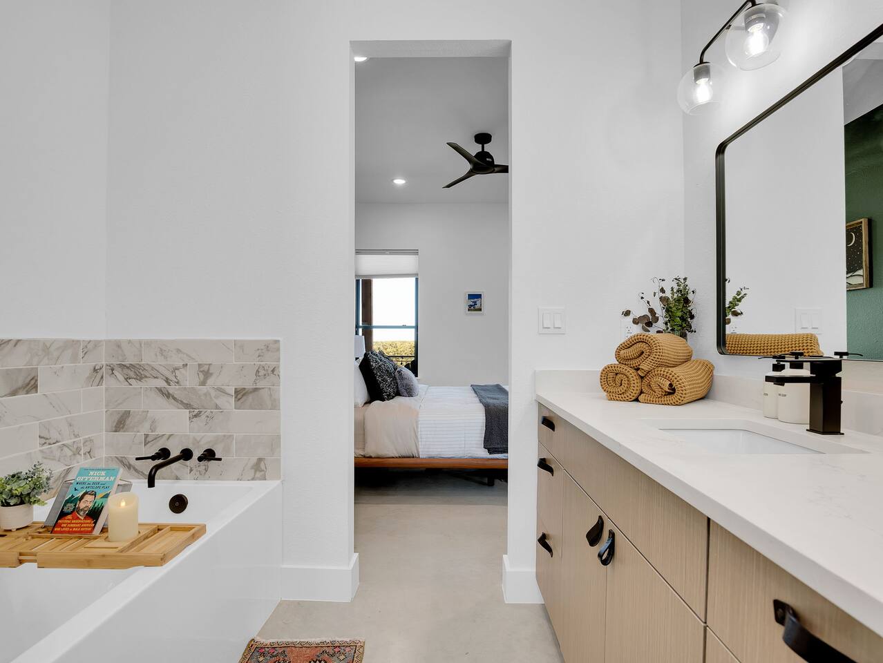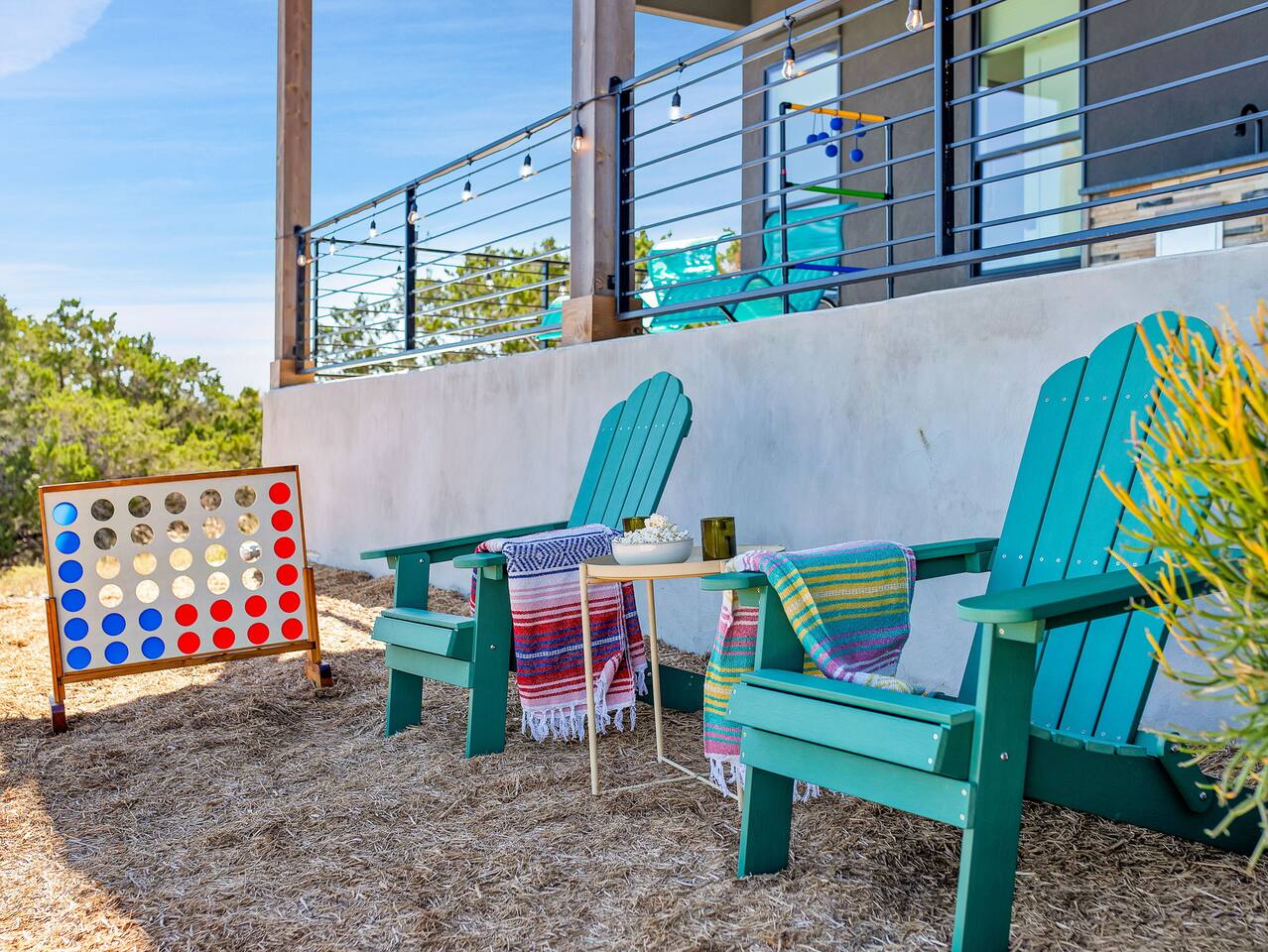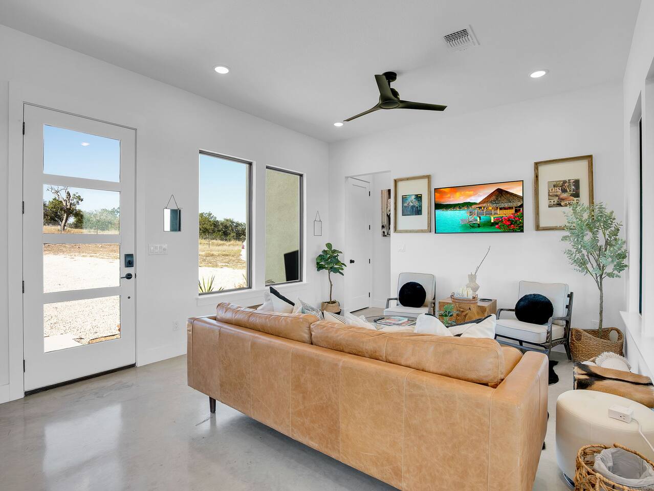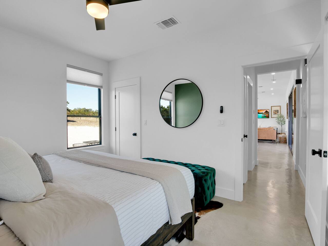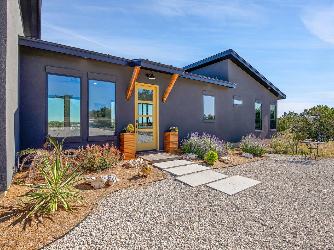 Welcome to your modern Ranchette nestled on 29 acres of scenic hill country beauty! 1.5 from Austin, TX! With 2 bedrooms and 2 baths, this retreat offers a perfect balance of rustic luxurious charm and comfort for your getaway. Looking to add a little indulgence? Our charcuterie packages can be pre-purchased and will greet you when you arrive! Message me after you book to make arrangements. (3 day notice required for charcuterie packages. Additional fees apply) Indulge in relaxation in your master suite, where you'll find an ensuite bathroom boasting a standing shower and a rejuvenating soaking tub. Make yourself comfortable in the luxurious 100% performance cotton linens, linen blend throws and well appointed designer furnishings. The living room is roomy and cozy, extending a welcoming space to unwind and enjoy quality time with loved ones. Sink into the leather couch, catch up on your favorite shows, or simply stargaze after the sunsets on a clear night! Panoramic tri-fold sliding doors allow you to indulge in the perfect setting for al fresco dining with outdoor seating. Ground yourself in the beauty of nature, or simply take a moment to savor your morning coffee while soaking in the tranquil atmosphere. Your rocking lounge chairs provide a serene spot to unwind and soak up the stunning hill country views. And when the Texas summer sun beckons, our cowboy pool awaits, offering a refreshing respite from the heat while you revel in the breathtaking surroundings. Sit by the fire pit and enjoy the view in the winter months (Oct- Feb). Bring your binoculars or telescope for the ultimate stargazing experience! Experience the perfect blend of modern comfort and breathtaking views at your tranquil ranchette. Book your stay now to experience the Texas hill country and create cherished memories in this idyllic hill country retreat! 20 min to Blanco, TX 22 min to Albert, TX 30 min to Luckenbach, TX 30 min to Boerne, TX 45 min to Fredericksburg, TX 50 min to Dripping Springs, TX 1 hr to San Antonio, TX 1.5 hrs to Austin, TX Cell service may be limited. Unplug from modern technology while relaxing and resetting at your hill country home. We provide T-Mobile Wifi which allows for limited streaming and wifi calls.